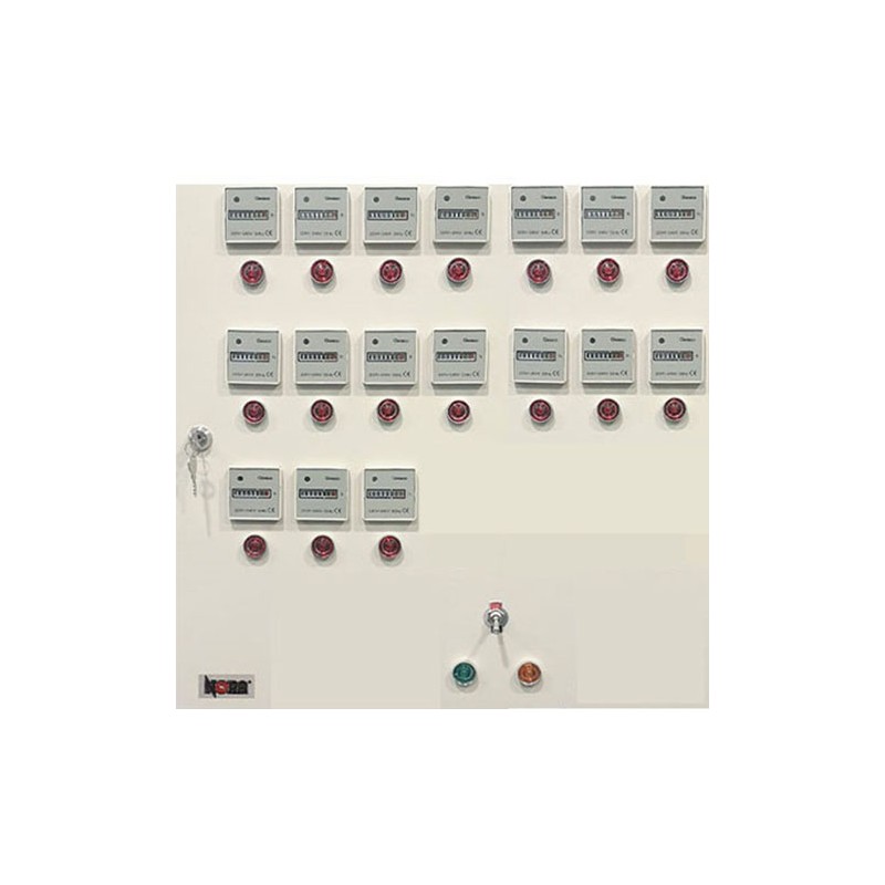 Μεταλλικός πίνακας 17 διαμερισμάτων χρονομέτρησης της κατανάλωσης θέρμανσης για αυτόνομα μονοσωλήνια συστήματα.