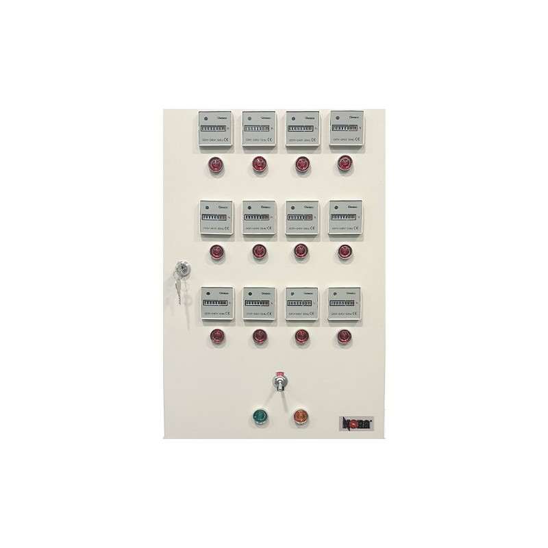 Μεταλλικός πίνακας 12 διαμερισμάτων χρονομέτρησης της κατανάλωσης θέρμανσης για αυτόνομα μονοσωλήνια συστήματα.