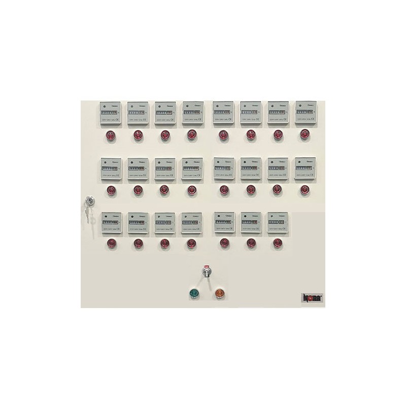 Μεταλλικός πίνακας 23 διαμερισμάτων χρονομέτρησης της κατανάλωσης θέρμανσης για αυτόνομα μονοσωλήνια συστήματα.
