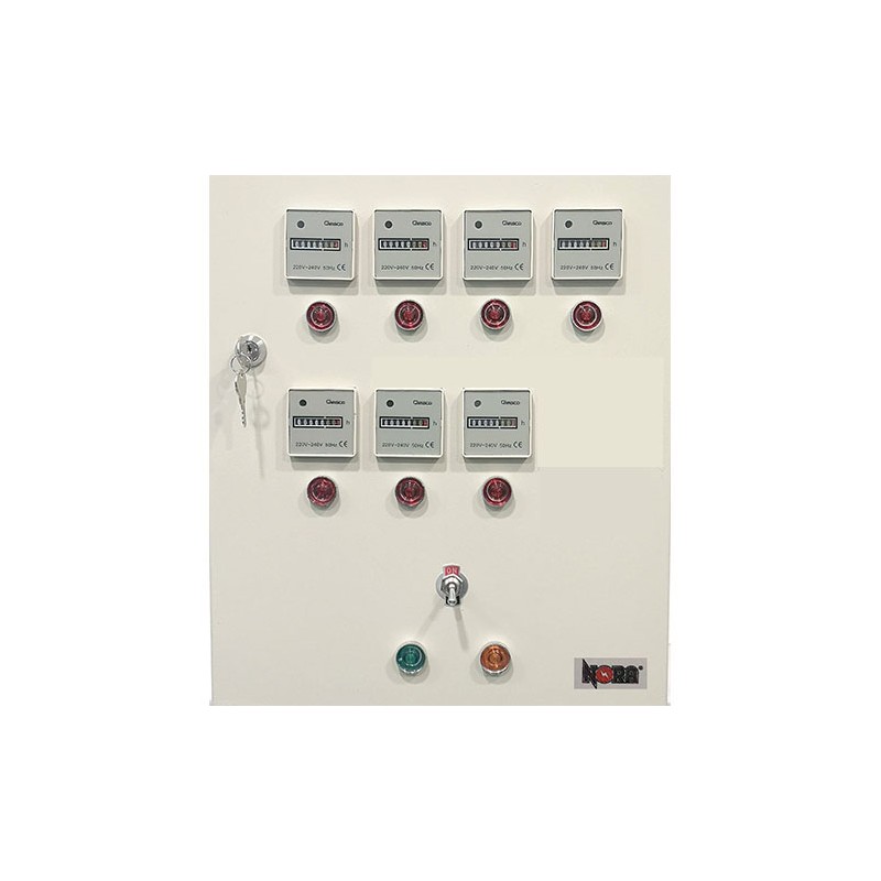 Μεταλλικός πίνακας 7 διαμερισμάτων χρονομέτρησης της κατανάλωσης θέρμανσης για αυτόνομα μονοσωλήνια συστήματα, με 3 κυκλοφορητές.