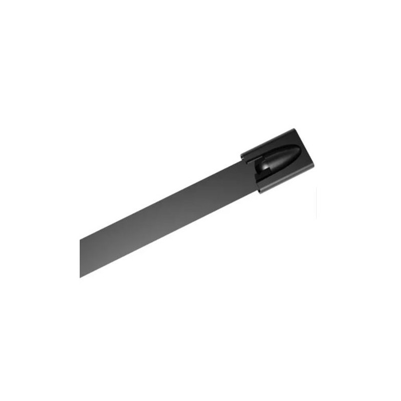 Coated steel ties made of acid resistant 316 grade stainless steel, coated with a layer of black polyester. The thin plastic coating and slightly rounded edges ensure efficient protection of cables before cutting.